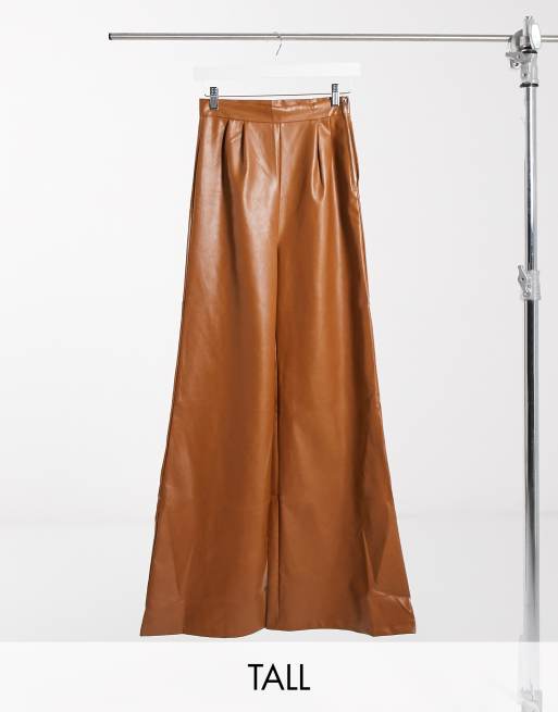 Naanaa Tall Weit Geschnittene Hose Aus Hellbraunem Kunstleder Evesham Nj