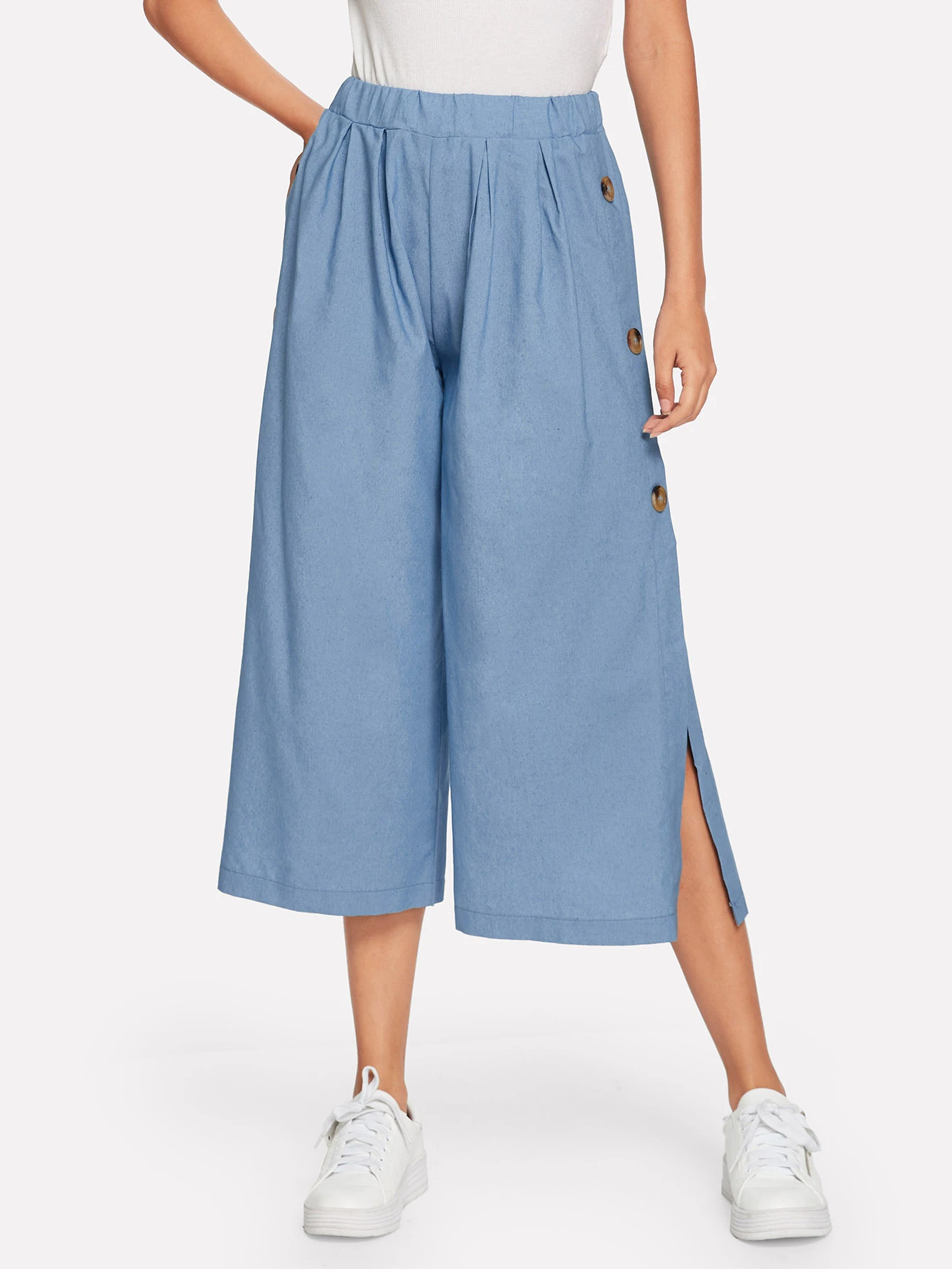Jeans Mit Knopfen Auf Den Seiten Und Weitem Beinschnitt Romwe