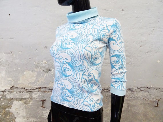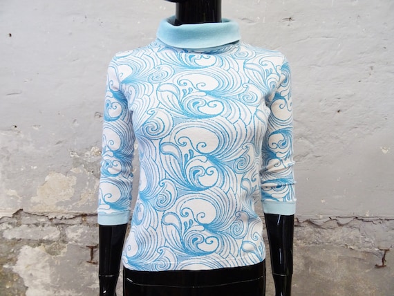 1970s Sweater Blue White Cotton Half Length Sleeves Etsy