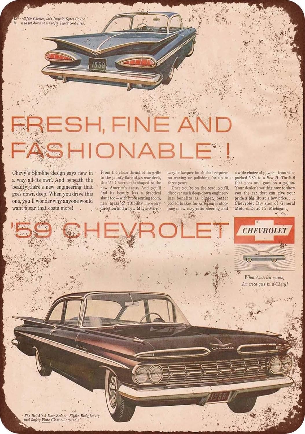 Yilooom 1959 Chevrolet Impala And Bel Air Vintage Look Reproduction Metal Sign 8 X 12 Amazon De Kuche Haushalt