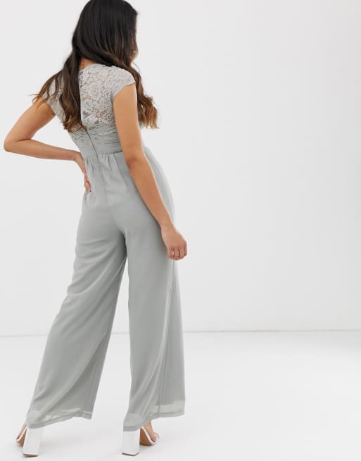 Little Mistress Petite Lace Top Wide Leg Jumpsuit In Waterlily Asos
