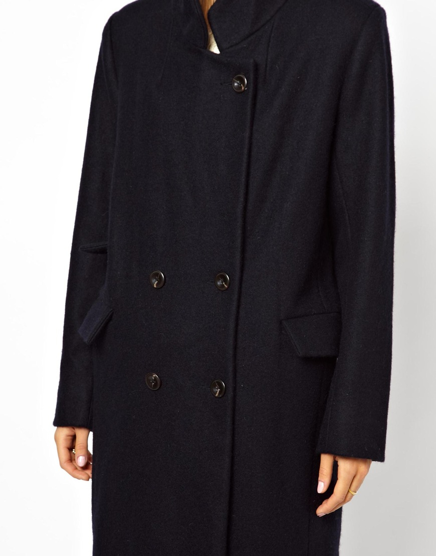 Ganni Military Long Classic Coat In Blue Lyst