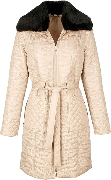 Laura Kent Damen Kurzmantel Mit Umlegekragen In Beige Mit Bindegurtel Und Abnehmbarer Webpelzbesatz Amazon De Bekleidung