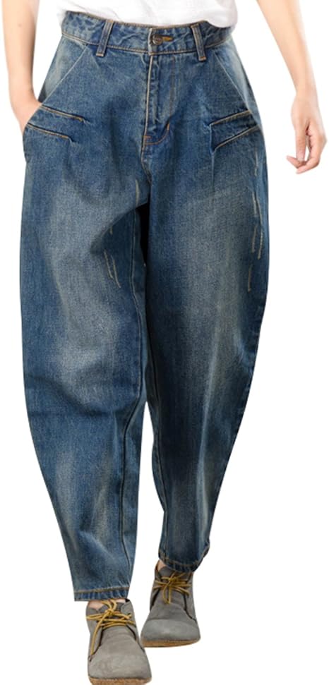 Frauit Damen Retro Falten Jeanshose Lose Denim Hose Herbst Winter Frauen Coole Geerntete Jeans Hosen Mit Tunnelzug Amazon De Bekleidung