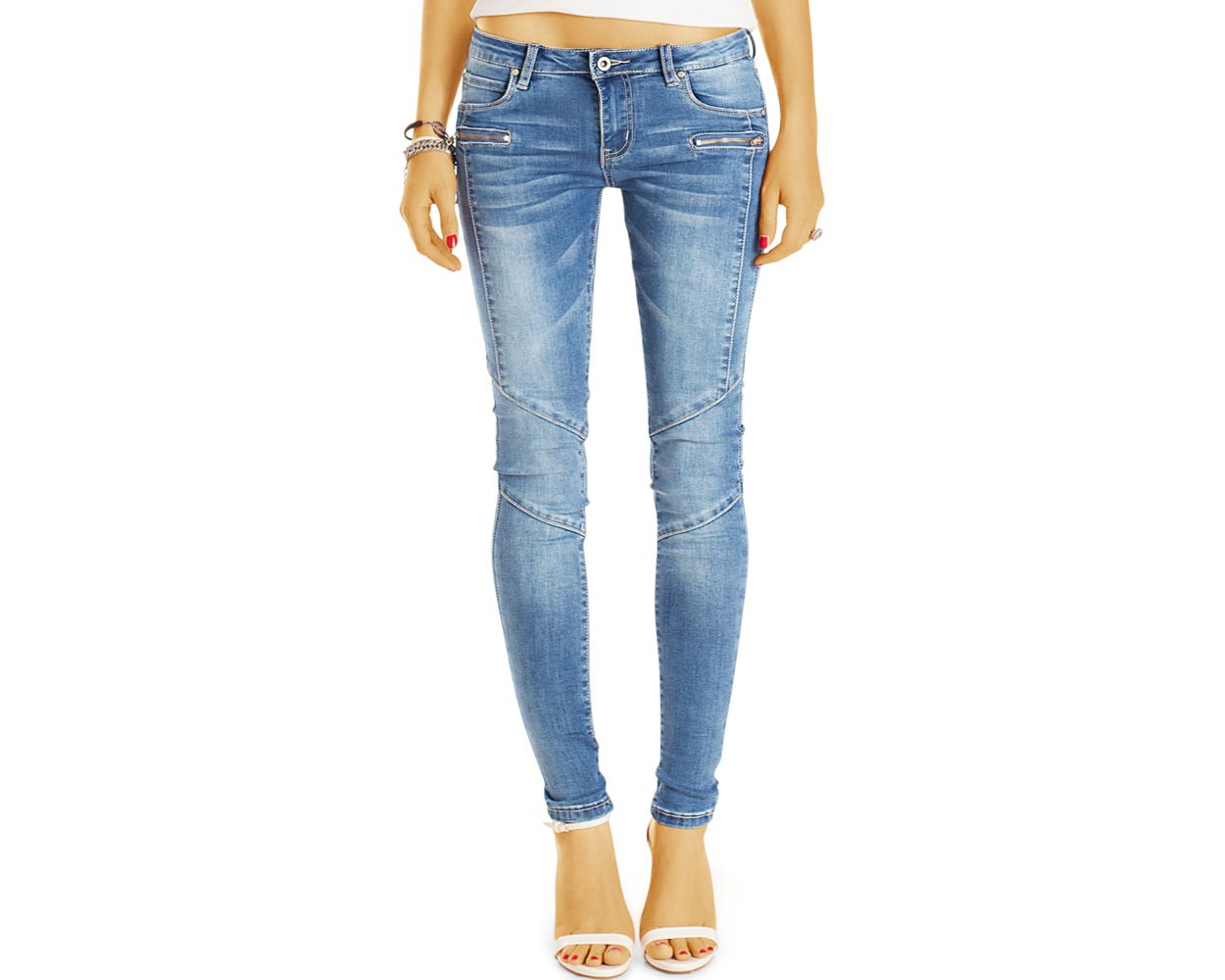 Be Styled Biker Look Damen Jeans Skinny Fit Jeans Mit Coolen Nahten Und Reissverschlussen J60f