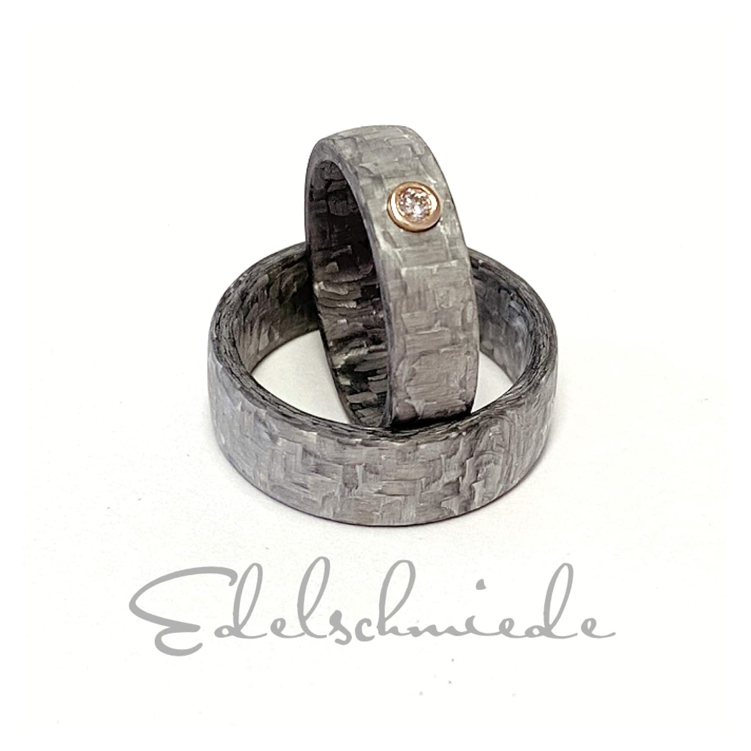 Ausgefallene Trauringe Carbon Grau Mit Brillant 0 05ct Im Damenring In Rotgold Gefasst Amazon De Handmade