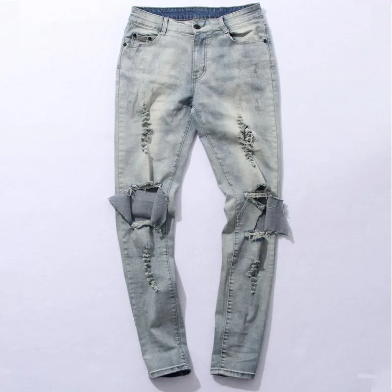 Neue Harajuku Zerrissenen Jeans Herren Baumwolle Stiefel Jeans Manner Blau Knie Loch Seite Schlank Zerrissene Distressed Skinny Jeans Distressed Skinny Denim Pantsboots Jeans Men Aliexpress