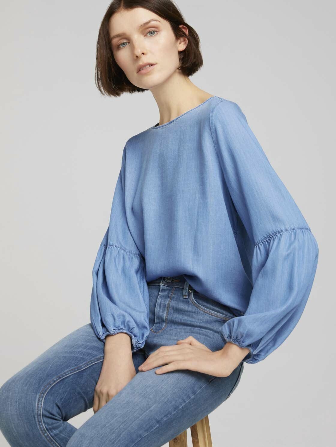 Bluse mit Puffärmeln Diese zwei Trends kombinieren wir jetzt Daher kombinieren wir den raffinierten Twist am liebsten zur lässigen MomJeans und sportlichen Sneakern So wird der sexy Elfen. Only Jeansbluse für 34,99€ JeansOberteil mit Puffärmeln, Knöpfe vorn, Knöpfe an den Ärmeln bei OTTO. Bluse aus Kreppstoff mit Puffärmeln und Rundhalsausschnitt Normale Passform Kreppstoff Brustweite in Größe S = 78 cm, Länge = 50 cm.