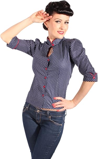 Sugarshock Damen Cute Asia Polka Dots Rockabilly Puffarmel Stehkragen Bluse Shirt Amazon De Bekleidung