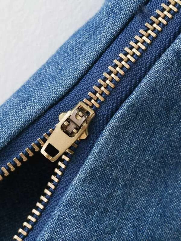 Jeans Bluse Mit Puffarmeln Ose Und Band Aktuelle Trends Gunstig Kaufen Shein Deutschland