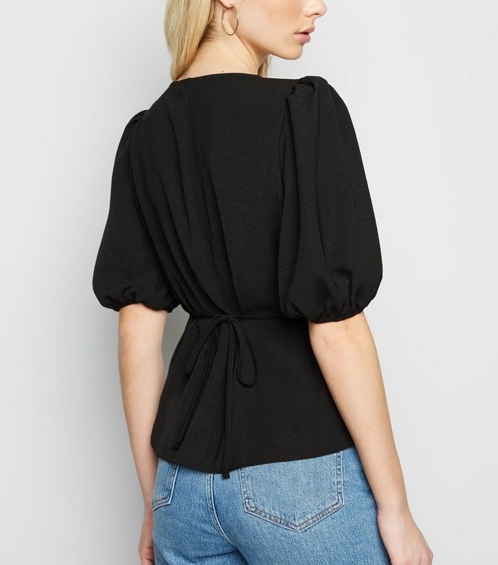 Schwarze Bluse Mit Puffarmeln Und V Ausschnitt New Look