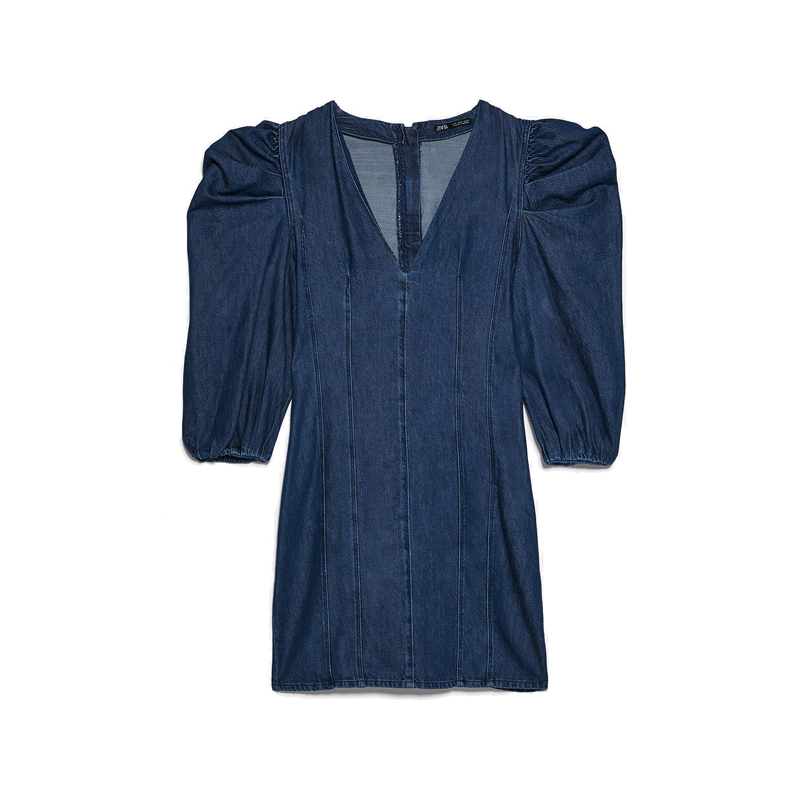 Stradivarius Mit Puffarmeln Jeanskleid Blue Blau Zalando De