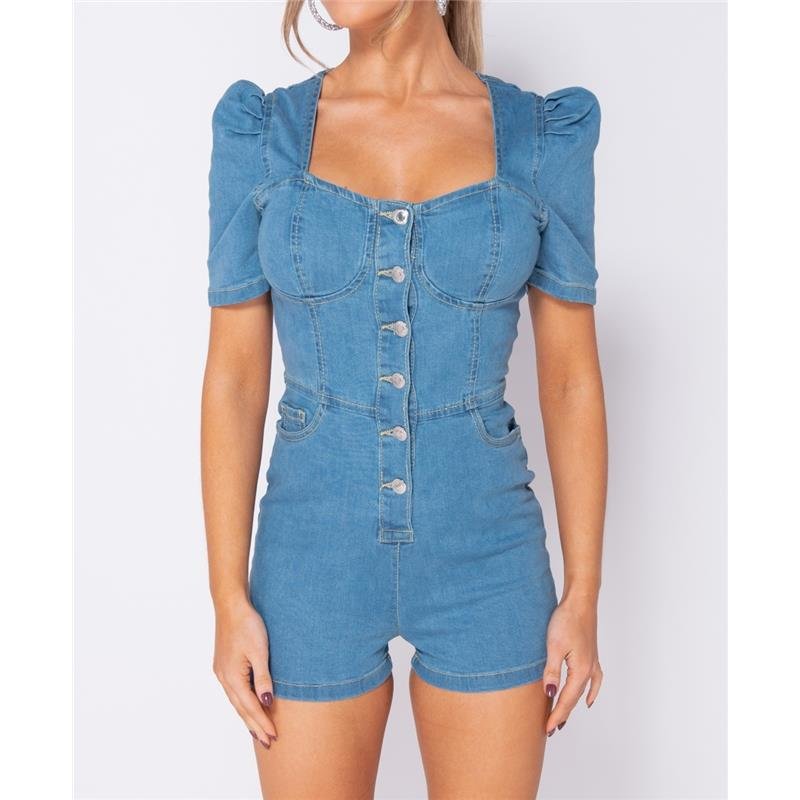 Damen Jeans Overall Mit Kurzen Puffarmeln Blau 39 95