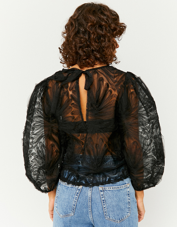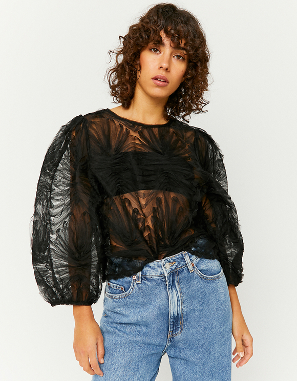 Schwarze Bluse Mit Puffarmeln Aus Organza New Look
