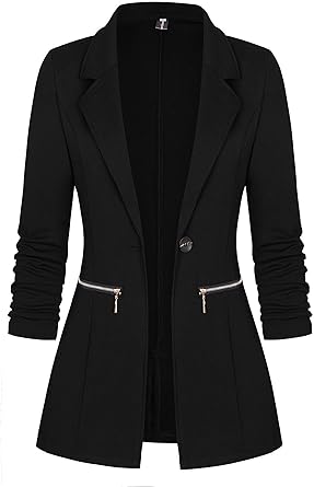 Genhoo Women S Long Sleeve Blazer Open Front Cardigan Jacket Work Office Blazer With Zipper Pockets At Amazon Women S Clothing Store