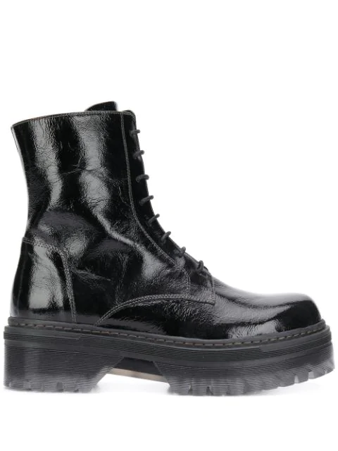 Ted Baker Leather Lace Up Biker Boots In Black Lyst