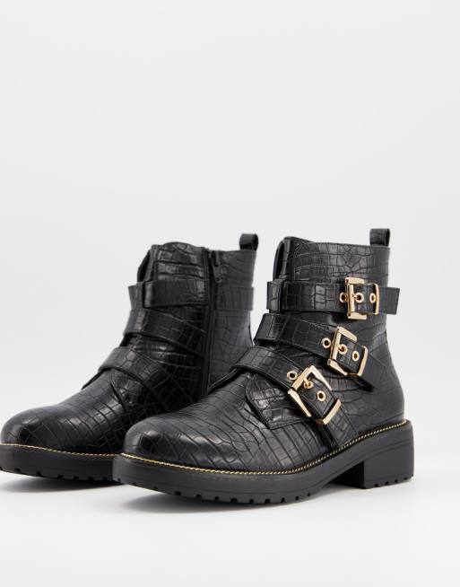 Bershka Biker Boots Mit Schnallendetail In Schwarz Evesham Nj