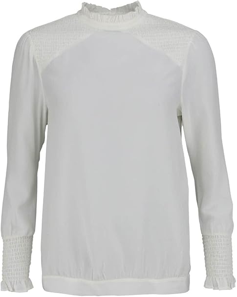 Vian Lundgaard Damen Frauen Bluse Mit Stehkragen Und Ruschen Weiss Grosse L Amazon De Bekleidung