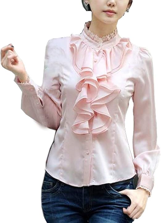 Grosshandel Neue Ankunft Damen Frauen Langarm Stehkragen Volant Bluse Mode Ruschen Chiffon Shirts Von Lin And Zhang 11 01 Auf De Dhgate Com Dhgate