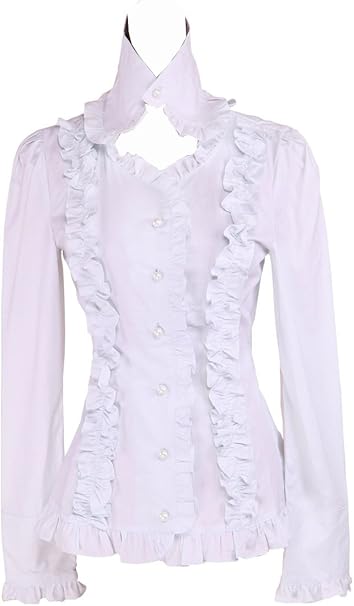 Antaina Weiss Baumwolle Rusche Spitze Viktorianisch Stehkragen Lolita Hemd Bluse Mehrweg Amazon De Bekleidung