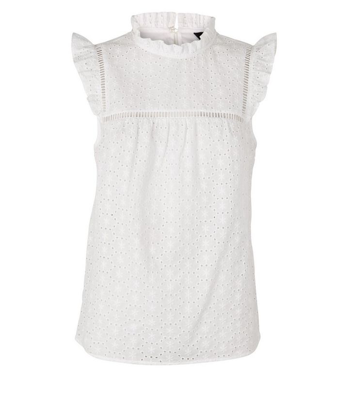 Weisse Bluse Mit Stickerei Ruschen Und Stehkragen New Look