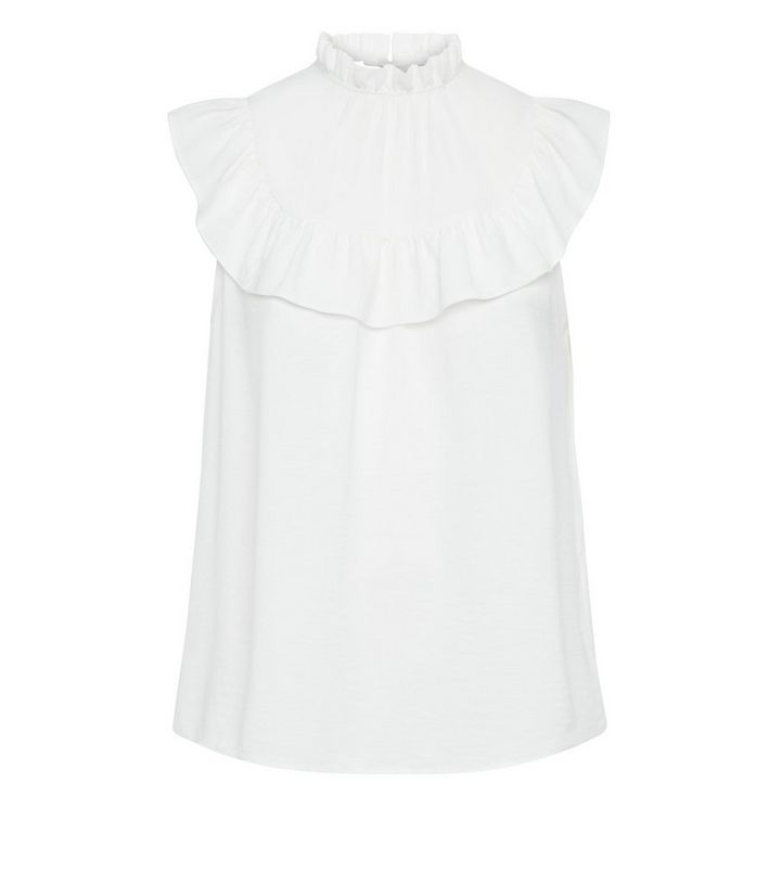 Bluse In Gedecktem Weiss Mit Stehkragen Und Ruschen New Look