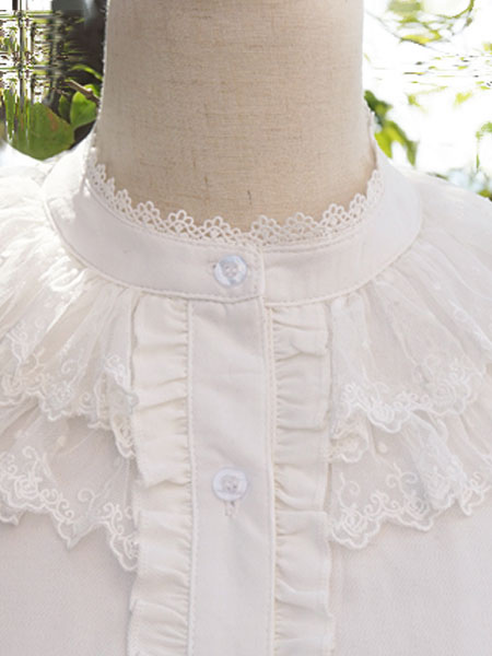 Lolitashow Weissen Stehkragen Lolita Bluse Langarm Mit Ruschen Lolitashow Com