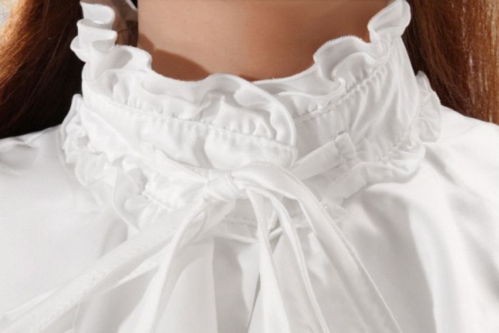 Weisse Lolita Bluse Baumwolle Langarm Hochkragen Ruschen Lolita Top Lolitashow Com