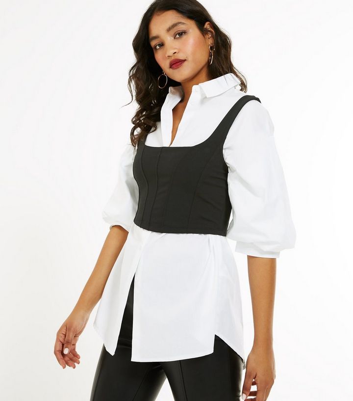 Schwarzes Crop Top Mit Korsettnaht Vorne New Look