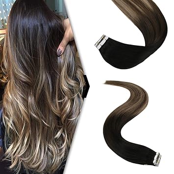 Youngsee Tape In Extensions Ombre Dunkelstes Braun Zu Mittelbraun Mit Blond Remy Echthaar Tape In Extensions Balayage Skin Weft Tape Extensions Kleber Echthaar pcs 50g 60 Cm Amazon De Beauty