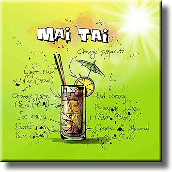 Amazon De Artworks Decor Mai Tai Cocktail Rezept Getrank Bild Auf Leinwand Wand Kunst Dekor Fertig Zum Aufhangen 12 X 12