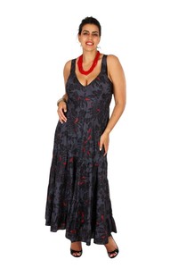 Plus Size Maxikleid Sommerkleid Volantkleid Grau Schwarz Rot Gr 50 52 54 56 Ebay