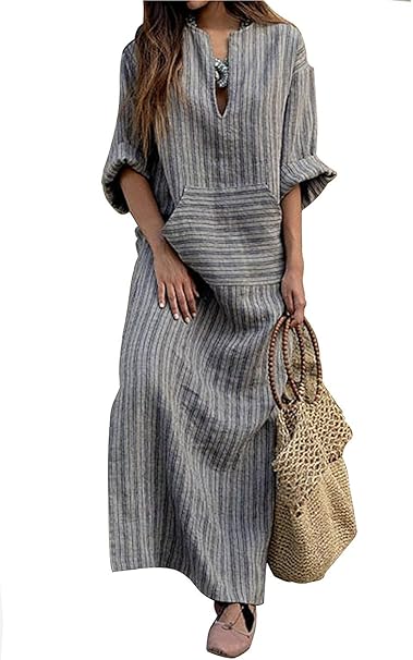 Magimodac Damen Maxikleid Sommerkleid Kleider Boho Party Kleid Leinenkleid Strandkleid Lang Grau Gr 36 50 Amazon De Bekleidung