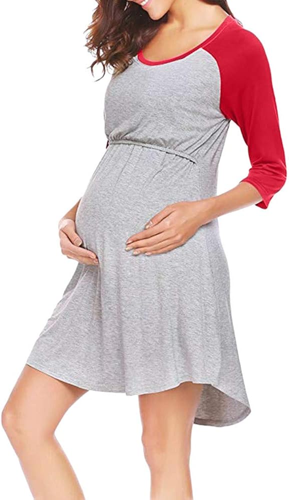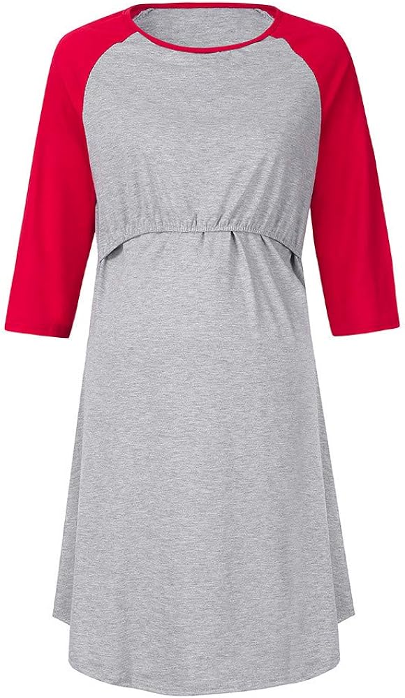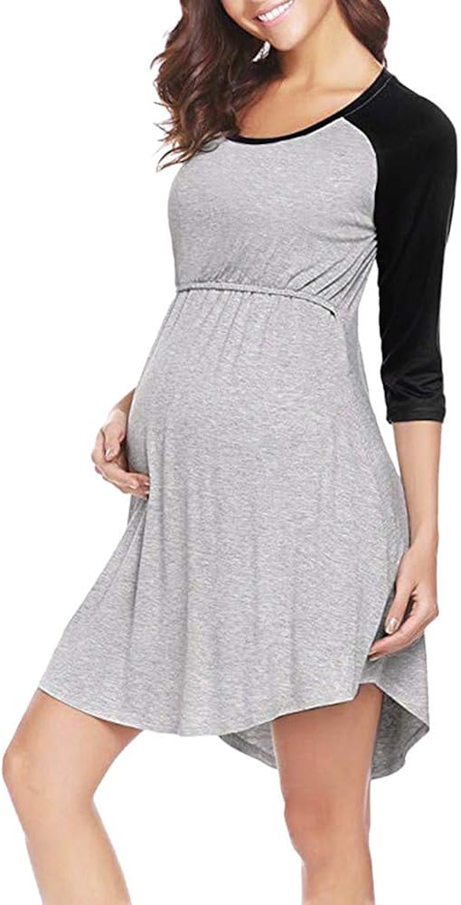 Lurcardo Stillkeid Umstandskleid Lange Armel Farbblock Stillkleid Schwangerschafts Kleid Mode Rundhals Still Nachthemd Stillen Kleid Umstandsmode Frauen Damen Kleid Sommer Damen Kleider Bekleidung Kleider