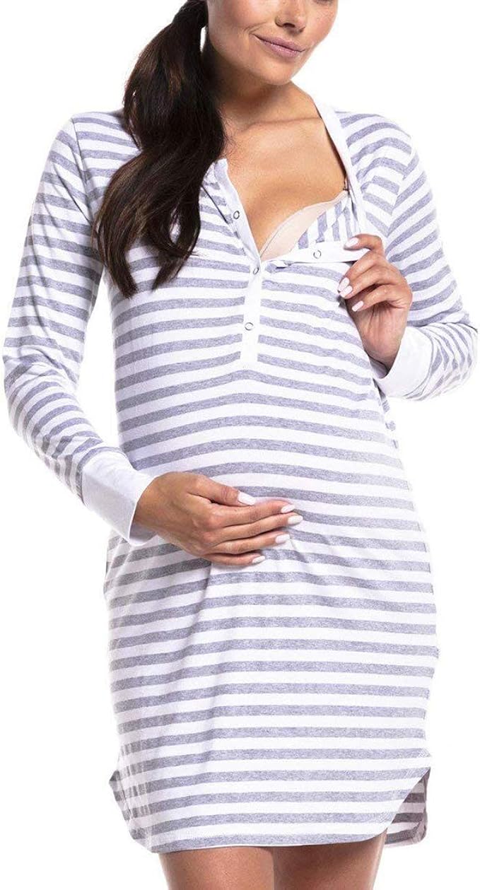 Gaga City Damen Umstandskleid Umstandsnachthemd Stillnachthemd Langarm Nachthemden Fur Schwangere Und Stillzeit Nachthemd Stillen Nachtwasche Streifen Amazon De Bekleidung