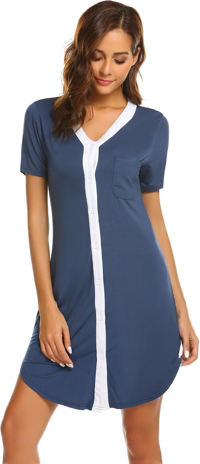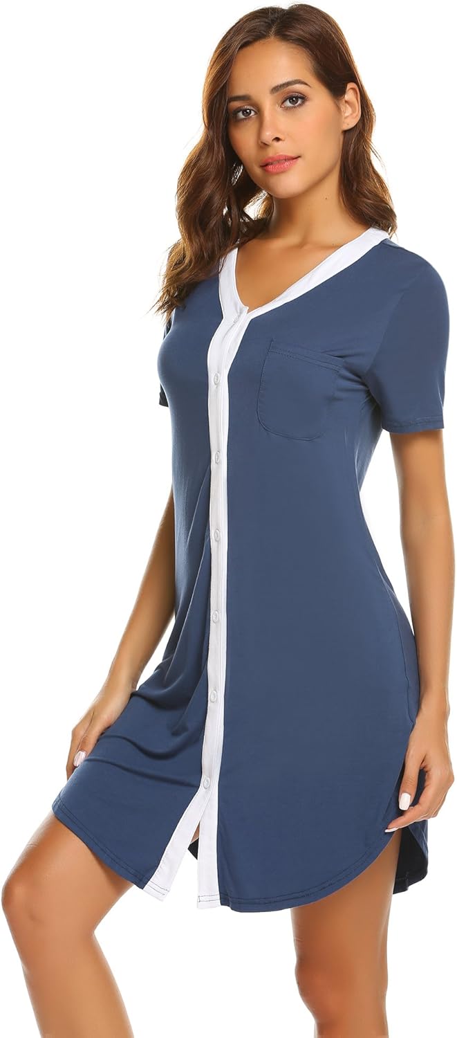 Ekouaer Damen Krankenpflege Schlaf Knopf Front Nacht Kurz Armel Nachthemd Stillen Nachtwasche