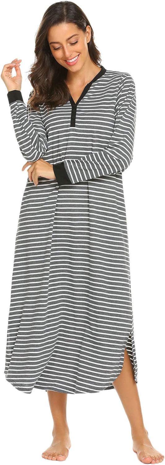 Damen Nachthemd Damen Langarm Nachthemden Lang Schlafkleid Einteiliger Schlafanzug Nachtkleid V Ausschnitt Streifen Knopfleiste Umstandsnachthemd Nachtwasche Stillen Schlafanzugoberteil Fur Frauen Bekleidung Luxdental Si