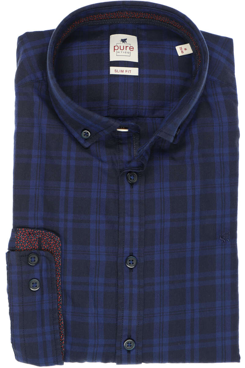 Hochwertiges Pure Slim Fit Hemd In Der Farbe Dunkelblau Kariert Der Armeltyp Ist Langarm 67 5cm Das Hemd Ist Pflegeleicht Und Ist Ohne Brusttasche Der Stoff Ist Ein Feines Popeline Gewebe Aus 100