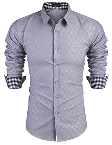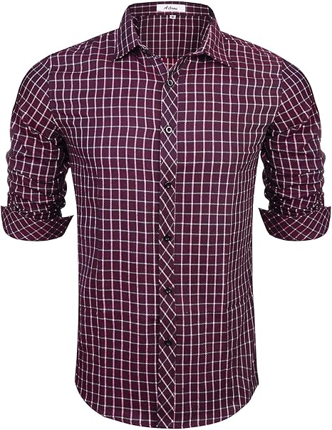 Kuson Herren Langarm Hemd Karohemd Kariert Hemden Freizeit Bugelleicht Baumwolle Button Down Long Sleeve Shirt Men Business Casual Shirts Slim Fit Mens Shirts