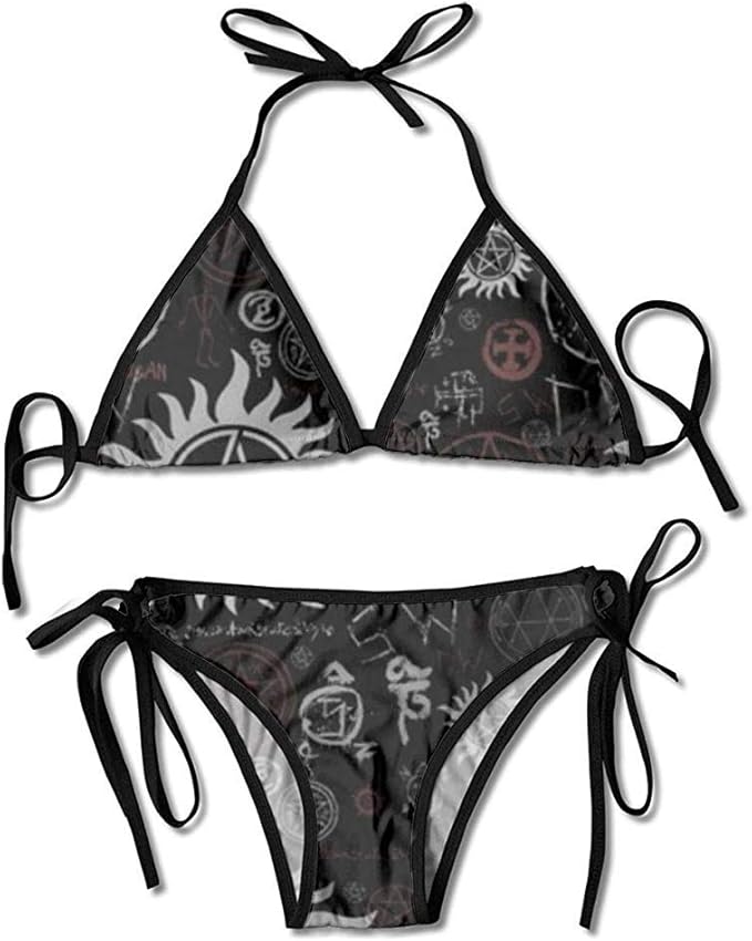 Pqu Awesome Bikini Supernatural Symbols Schwarz Damen Bikinis Badeanzug Premium Beachwear Sets Amazon De Bekleidung