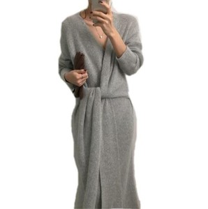 Elegant V Ausschnitt Schlank Damenmode Strickkleider Herbst Lange Kleider D Ebay