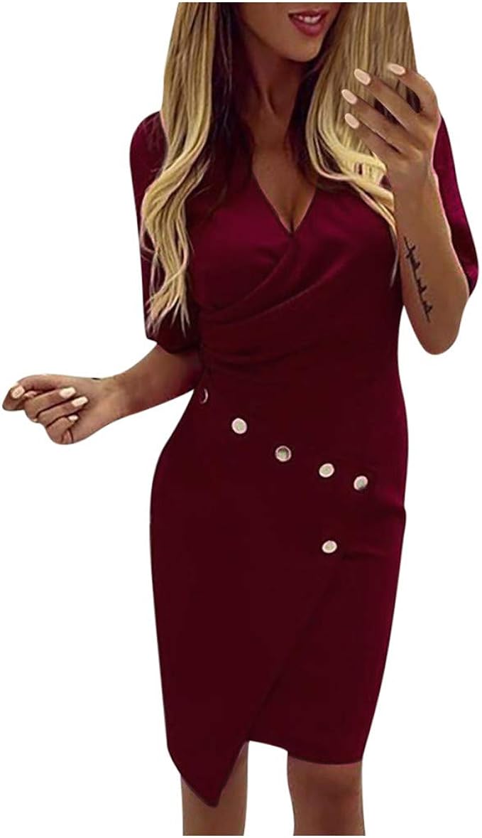 Wower Damen Elegant Etuikleid Bodycon Kleid Bleistiftkleid Knielang Einfarbig Abendkleid Business Kleid V Ausschnitt Wickelkleid Knielang Cocktailkleid Amazon De Bekleidung
