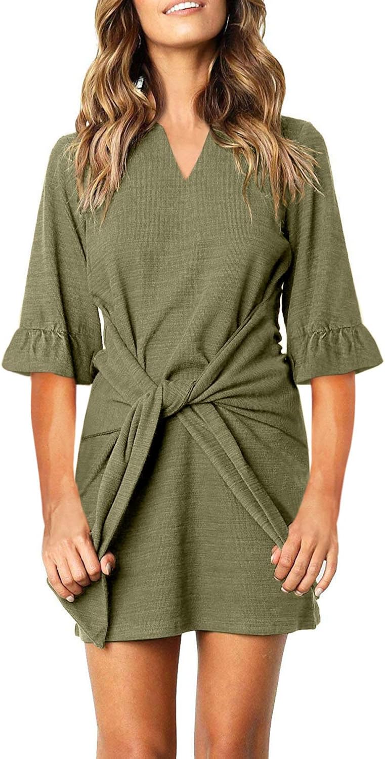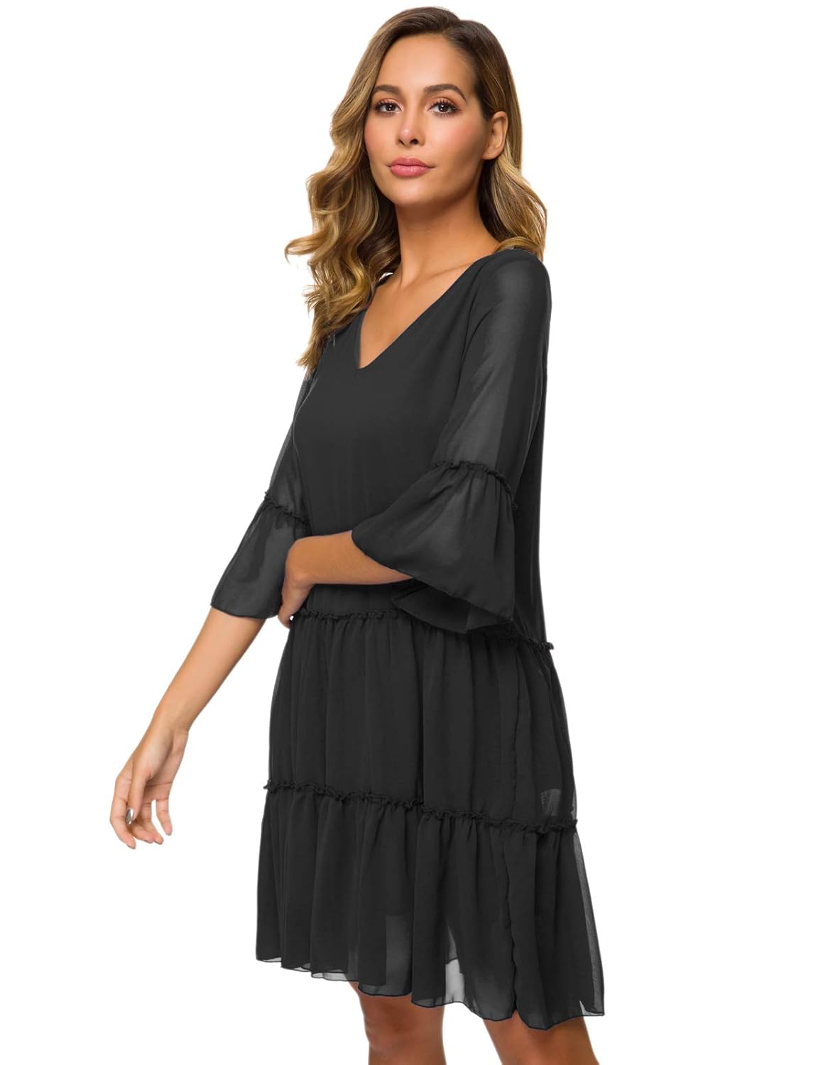 Chiciris Damen 3 4 Ruschenarmel Chiffon Kleid V Ausschnitt Mini Shift Kleider Elegant Kleider Freizeit