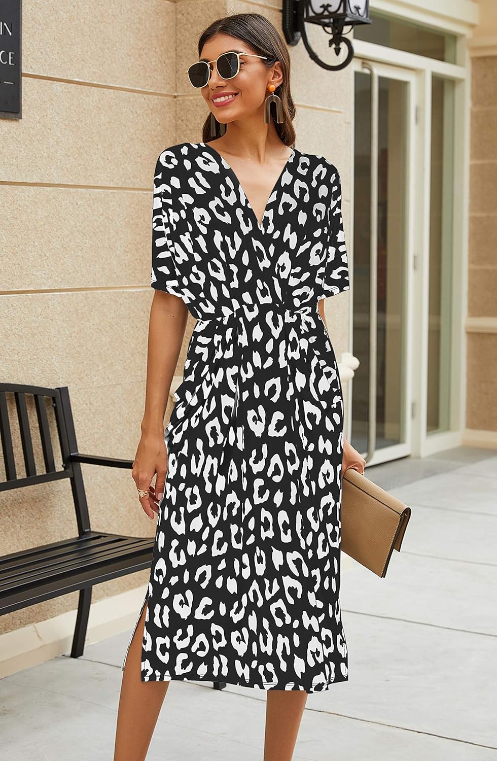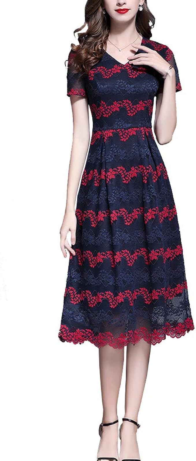 Damen Elegante A Line V Ausschnitt Kurzarm Sommerkleid Knielang Vintage Casual Kleider Swing Kleider Amazon De Bekleidung