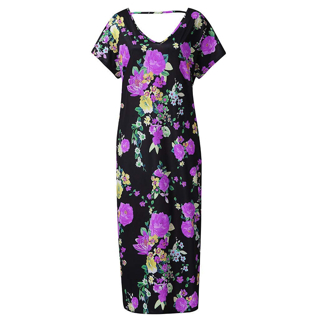 Maxi Kleid Damen Adamoka Grosse Grossen Sommerkleider Elegante Strandkleider Kurzarm V Ausschnitt Split Langes Kleid V Ausschnitt Maxi Tank Langes Kleid