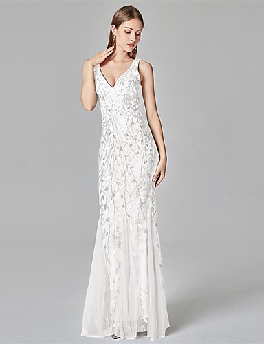 Battnot Damen Kleider Elegant V Ausschnitt Armelloses Riemchen Ruckenfrei Spitze Slim Fit Maxi Lange Abendkleid Frauen Sexy Lace Festlich Hochzeit Cocktailkleid Party Club Kostum Womens Weiss Dress Amazon De Bekleidung