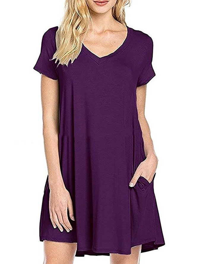 Elegantes Einfarbiges Kleid Mit V Ausschnitt