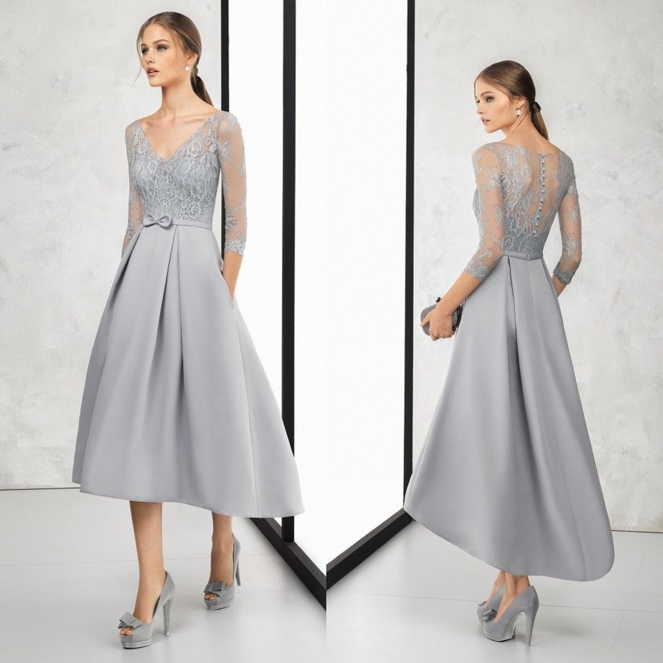 Grosshandel Elegante Silber Mutter Der Braut Kleider V Ausschnitt 3 4 Armel A Line Tee Lange Hochzeitsgast Kleid Abendkleider Von Manweisi 94 25 Auf De Dhgate Com Dhgate