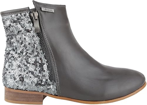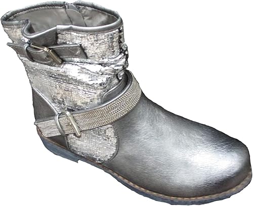 Kleidung Accessoires Damen Schuhe Luxus Biker Boots Stiefeletten Schnallen Glitzer Leder Optik Grau Unispaw Pl