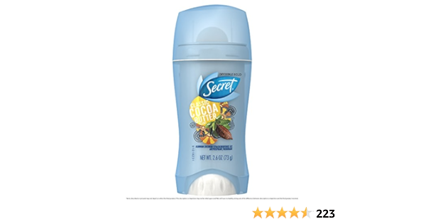 Secret is an antiperspirant/deodorant for women manufactured by Procter & Gamble It is sold in the United States, Canada, and Mexico It is sold in the United States, Canada, and Mexico Secret was launched as the first female deodorant in 1956, after more than 10 years of research that began in 1945. Product Title Secret Aluminum Free Deodorant for Women with Essential Oils Rose Geranium, 26 oz Average Rating ( 43 ) out of 5 stars 796 ratings , based on 796 reviews Current Price $1197 $ 11 97 ($460/oz). With Secrets Outlast Invisible Solid Deodorant you can feel confident no matter what, with longlasting protection that locks away odor for 48 hours!.